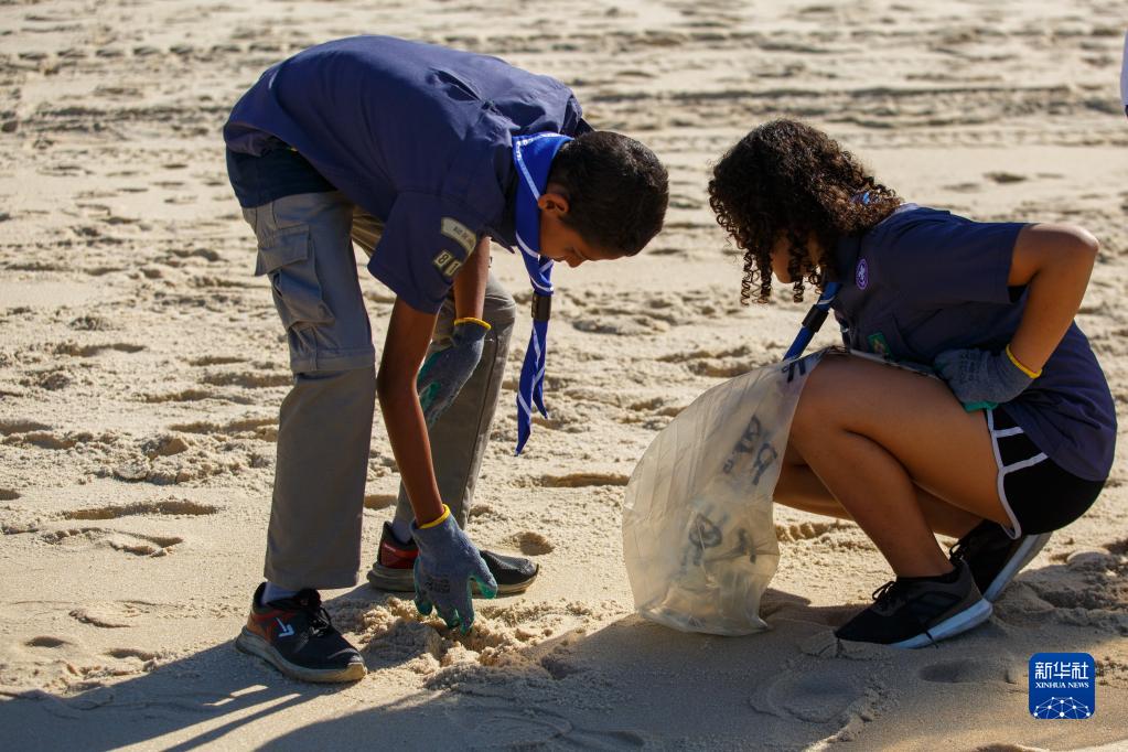 6月8日是世界海洋日。當日,志愿者們聚集在巴西里約熱內盧圣孔拉杜海灘,參與海灘垃圾清理行動(dòng)和保護海洋宣傳活動(dòng)。