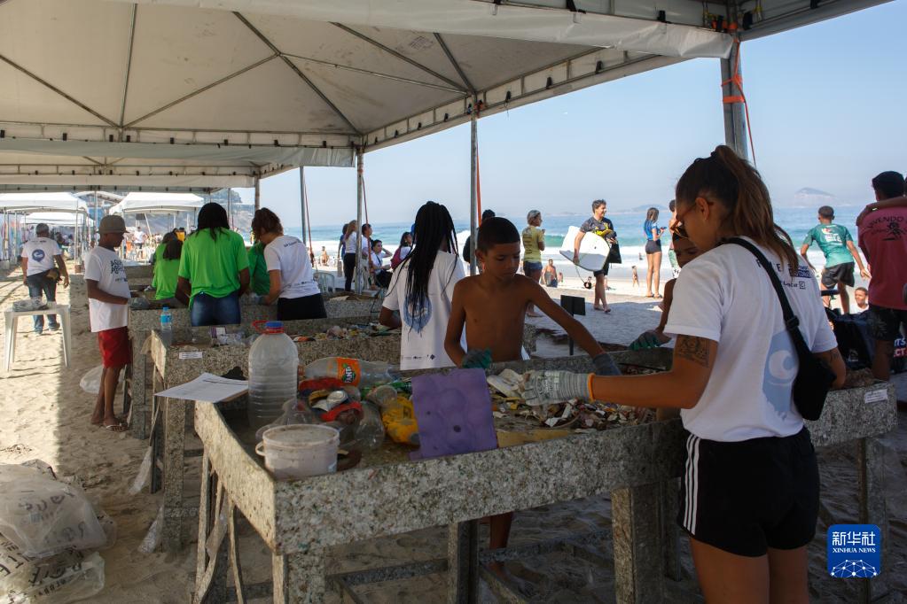 6月8日,在巴西里約熱內盧圣孔拉杜海灘,志愿者將收集到的垃圾進(jìn)行分類(lèi)。