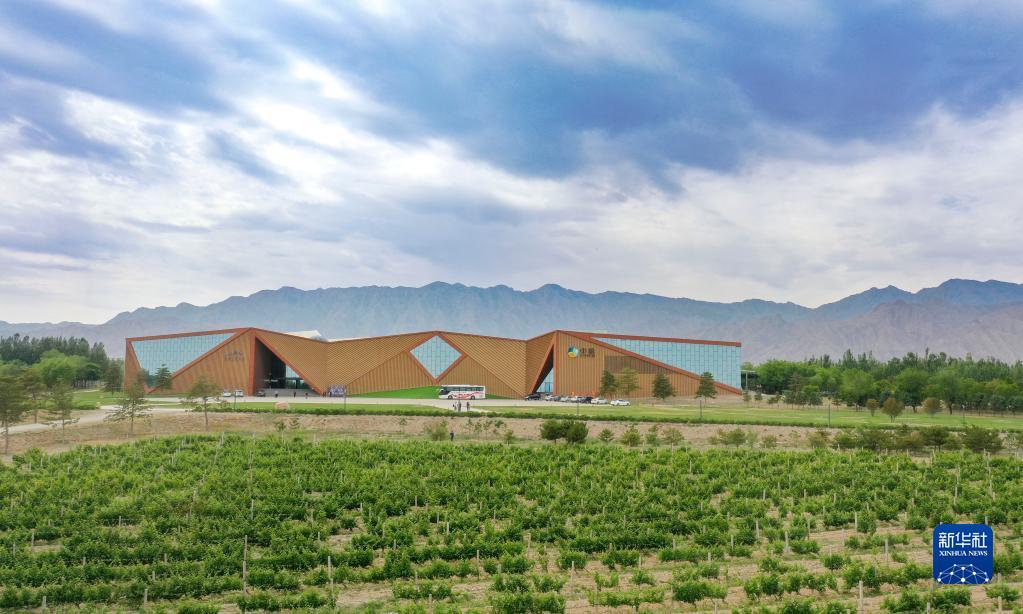 這是位于賀蘭山下的中糧長(cháng)城天賦酒莊(6月5日攝,無(wú)人機照片)。