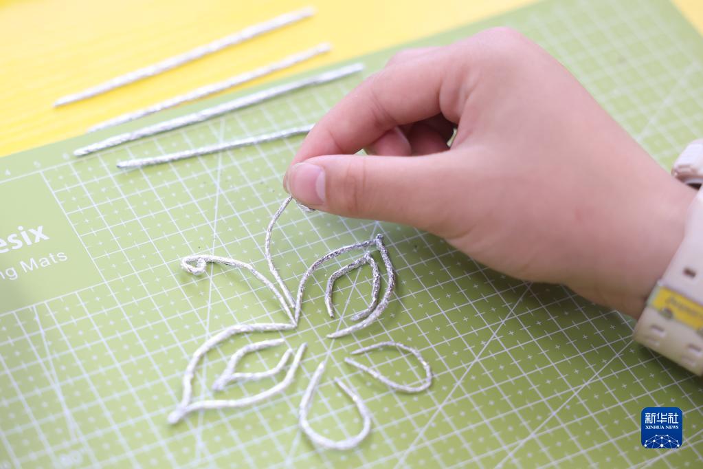 6月9日,湖南省長(cháng)沙市朝陽(yáng)小學(xué)學(xué)生在特色美育課上制作有苗族銀飾特色的手工作品。