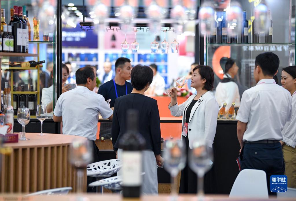 6月9日,嘉賓在展會(huì )現場(chǎng)品鑒葡萄酒。