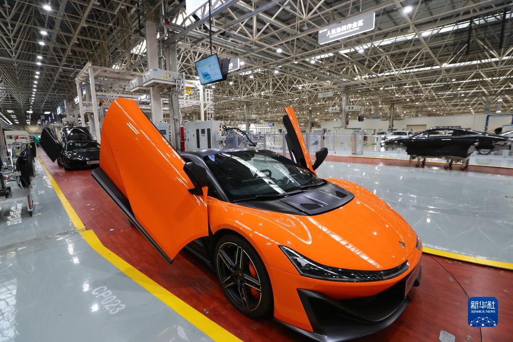 這是6月9日在位于廣州番禺的廣汽埃安智能生態(tài)工廠(chǎng)內拍攝的高端智能電動(dòng)超跑Hyper SSR生產(chǎn)線(xiàn)。