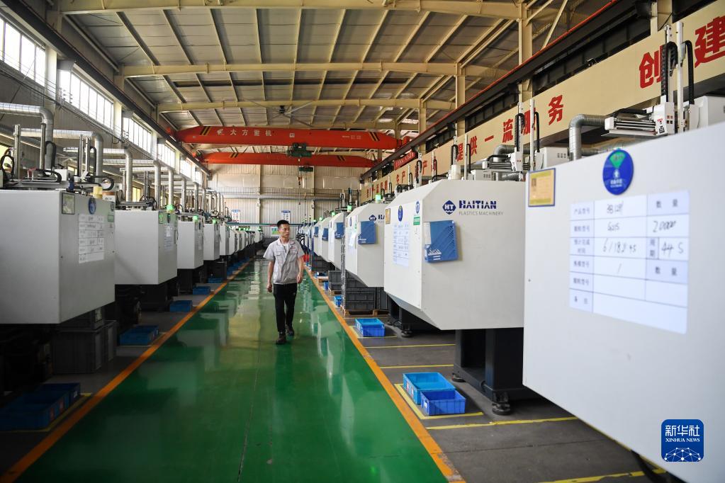 6月9日,河北滄州榮盛達電器有限公司工人在全自動(dòng)生產(chǎn)線(xiàn)旁巡檢。
