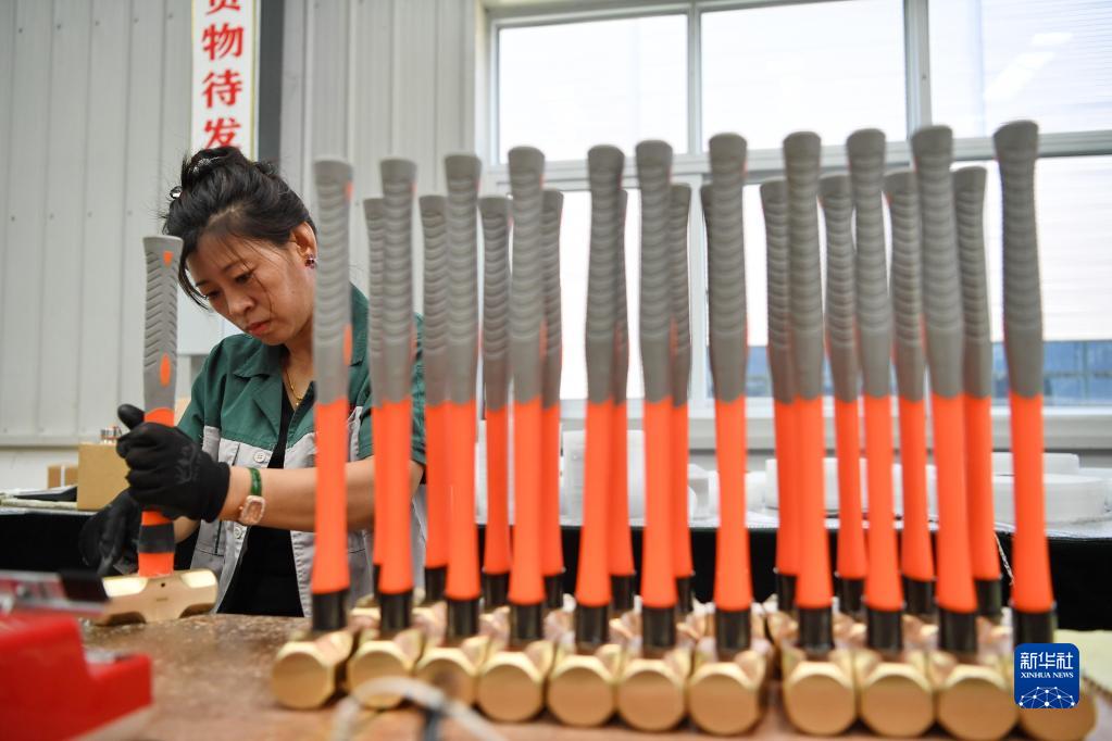 6月9日,河北滄州泊頭市中泊防爆工具集團股份有限公司的工人在組裝產(chǎn)品。