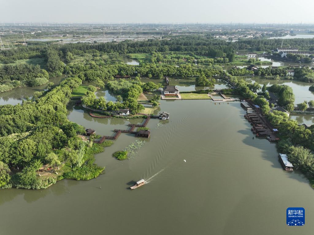 6月9日拍攝的沙家浜國家濕地公園景色(無(wú)人機照片)。