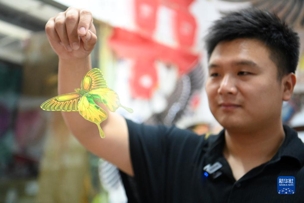 出身風(fēng)箏世家的魏博文大學(xué)畢業(yè)后,回到家鄉跟隨父親魏國秋“入行”做風(fēng)箏。他從自己有所基礎的繪畫(huà)著(zhù)手,發(fā)揮年輕人的創(chuàng )新優(yōu)勢,在風(fēng)箏設計上屢屢出新,不僅與一些游戲公司合作推出風(fēng)箏聯(lián)名款,還推動(dòng)風(fēng)箏制作技藝的改進(jìn)創(chuàng )新,設計了適合在室內放飛的迷你風(fēng)箏。