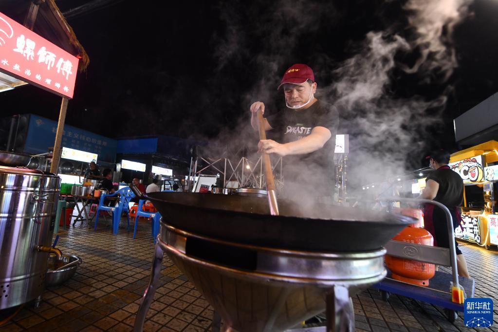 夏夜里,廣西柳州市柳北區新開(kāi)的廣雅民生夜市煙火氣升騰,炒田螺、螺螄粉、烤肉串等特色美食吸引眾多市民。