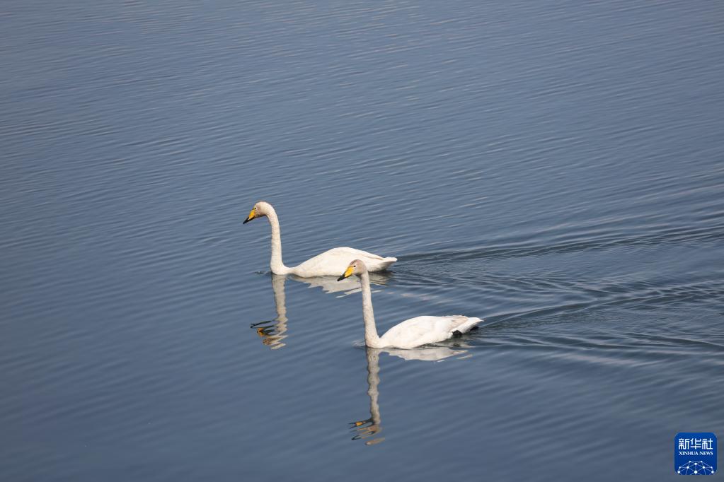 這是6月9日在蒙古國庫蘇古爾湖拍攝的天鵝。