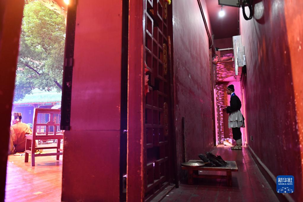 6月5日,在長(cháng)沙市坡子街火宮殿,長(cháng)沙市花鼓戲保護傳承中心的演員在舞臺候場(chǎng)。