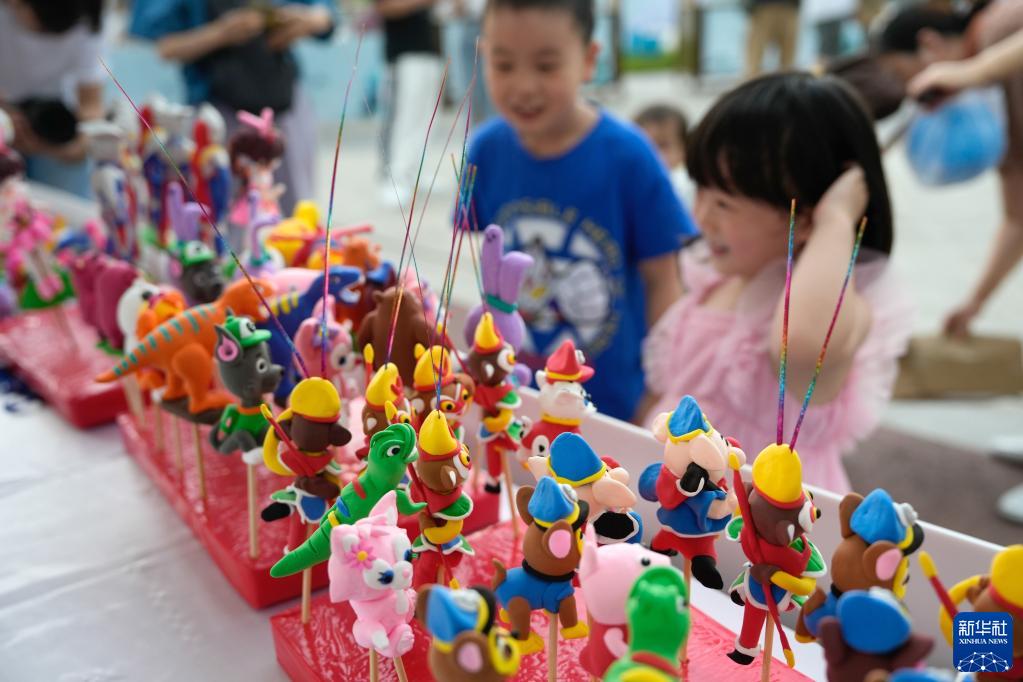 6月10日,揚州舉行非遺傳承系列活動(dòng),非遺互動(dòng)體驗集市上的揚州面塑吸引了小朋友的目光。