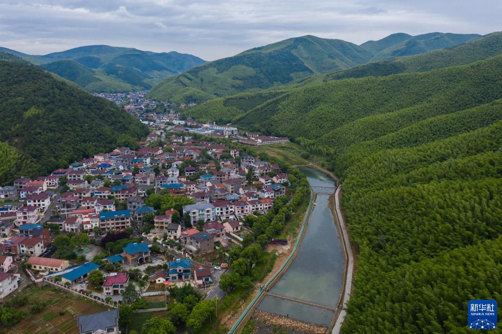 空中俯瞰浙江湖州市長(cháng)興縣煤山鎮新川村(5月24日攝,無(wú)人機照片)。該村先后獲評全國民主法治示范村、浙江省全面小康建設示范村、浙江省衛生村、浙江省美麗鄉村特色精品村、浙江省AAA級景區村莊等。
