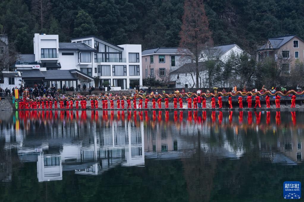 浙江杭州市富陽(yáng)區湖源鄉窈口村女子板龍隊在進(jìn)行板凳龍舞龍表演(2月1日攝)。湖源鄉是個(gè)群山環(huán)抱、青山綠水、生態(tài)秀美的山區鄉鎮,近年來(lái),湖源緊抓機遇,圍繞“樂(lè )水湖源、龍鱗+”發(fā)展目標,立足山水特色,錨定發(fā)展綠色經(jīng)濟,打造獨具特色的鄉村旅游品牌。