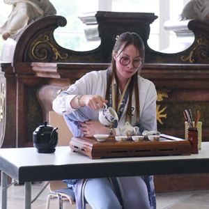 6月10日,在奧地利維也納大學(xué),選手馬甜甜在才藝表演環(huán)節表演茶藝。