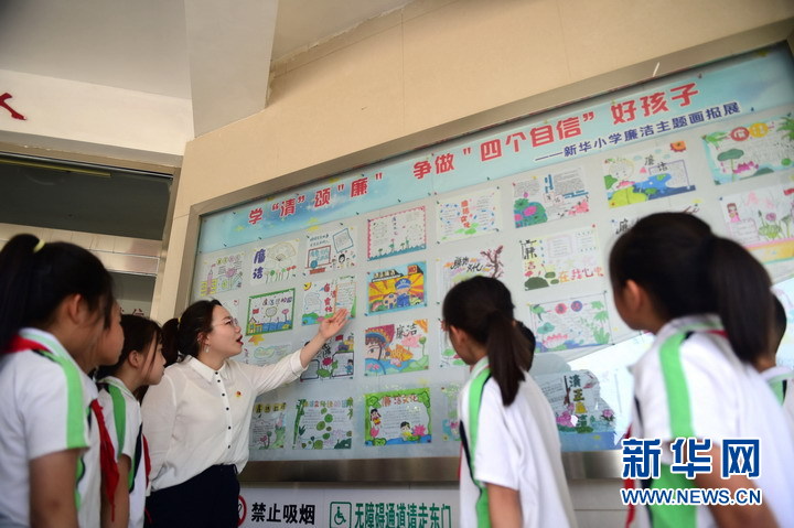 今年以來(lái),河北滄州市運河區紀委監委推動(dòng)廉潔文化進(jìn)校園,通過(guò)挖掘人文資源,融合清廉元素,繪廉畫(huà)、講廉事、讀廉文等形式把清廉教育融入課堂教育,對青少年浸潤清廉思想,使“廉”的種子在孩子們心中生根發(fā)芽。圖為6月7日滄州市運河區紀委監委工作人員在滄州新華小學(xué)“清廉課堂”為小學(xué)生講解“廉文化”。新華網(wǎng)發(fā)(謝辛 攝)