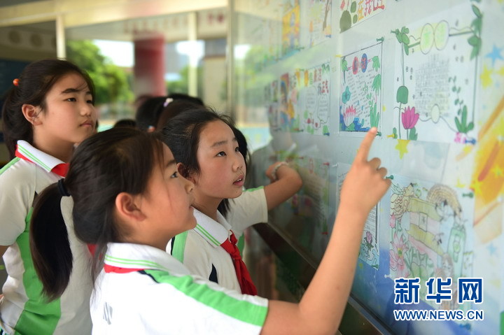 6月7日,滄州新華小學(xué)小學(xué)生觀(guān)看“清廉文化”手抄報展覽。新華網(wǎng)發(fā)(謝辛 攝)