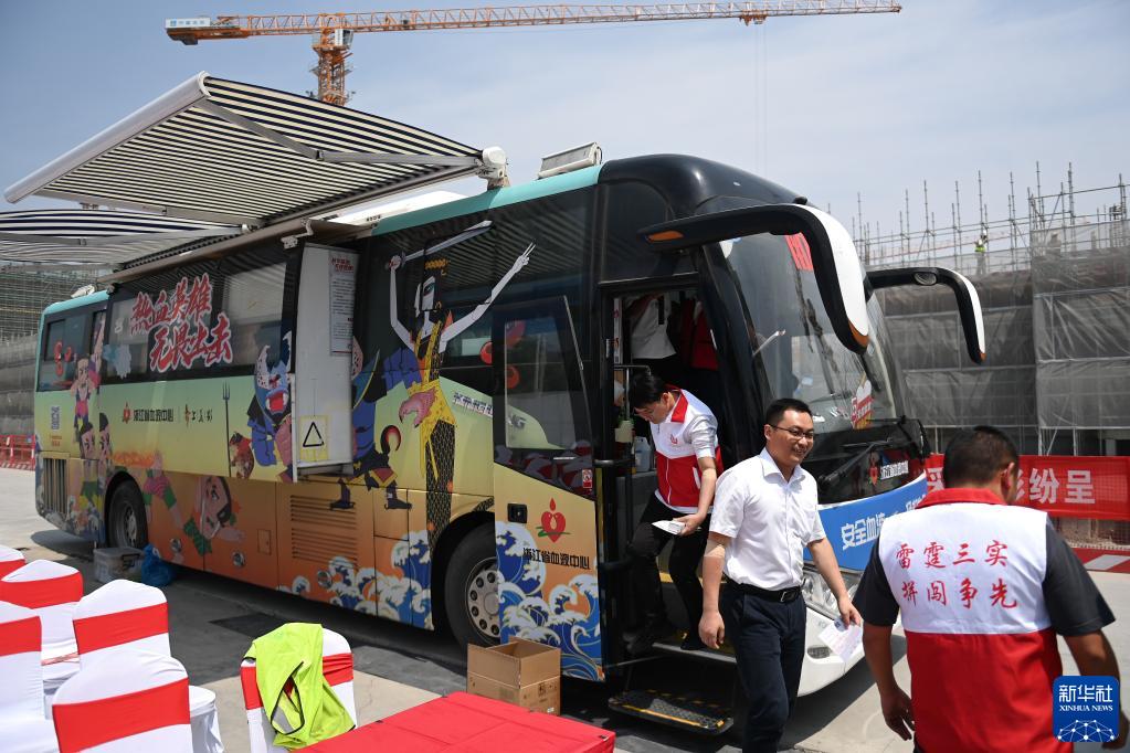 當日,在第20個(gè)“世界獻血者日”來(lái)臨前,浙江省血液中心的一輛獻血車(chē)來(lái)到中建三局浙江公司杭州錢(qián)塘18號廠(chǎng)房項目工地,30余名工程技術(shù)崗位的青年志愿者在通過(guò)化驗檢查后,登車(chē)完成無(wú)償獻血,奉獻愛(ài)心。