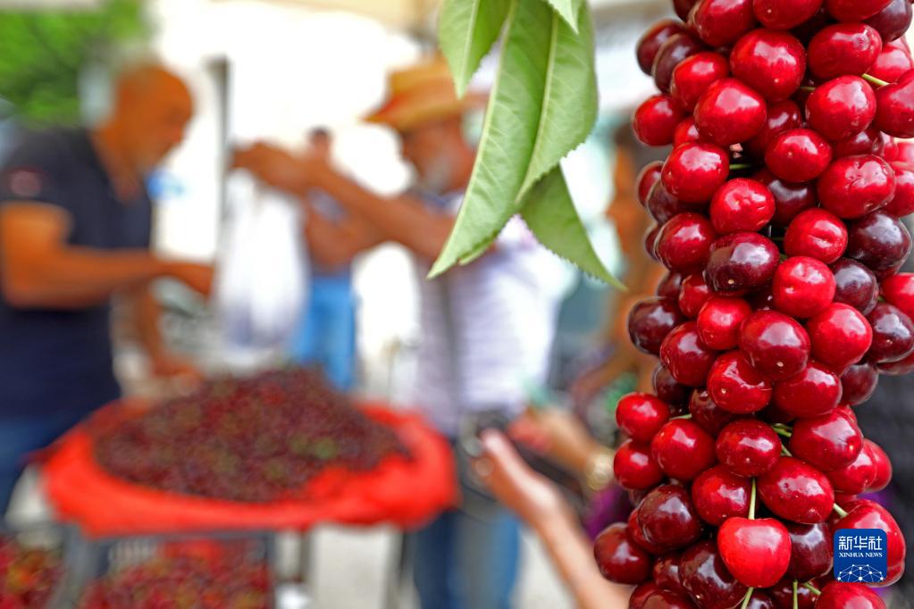 這是6月11日在黎巴嫩哈馬納舉辦的櫻桃節上拍攝的櫻桃。