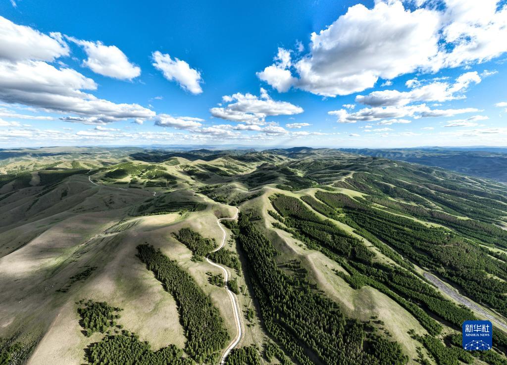 6月11日拍攝的位于內蒙古呼和浩特市的大青山(無(wú)人機廣角照片)。