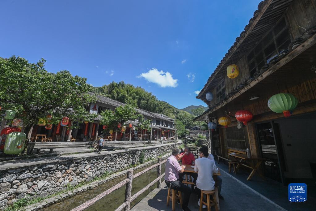 人們在浙江臺州黃巖區嶼頭鄉布袋坑村的溪水旁喝茶(5月30日攝)。近年來(lái),嶼頭鄉堅持黨建引領(lǐng),以全域旅游和美麗鄉村建設為重要抓手,引進(jìn)文化創(chuàng )意團隊,為鄉村旅游注入更加年輕化的元素,推進(jìn)特色民宿以及布袋山饅頭、溪坑魚(yú)等農特產(chǎn)品的發(fā)展,帶動(dòng)鄉村振興和百姓共富。