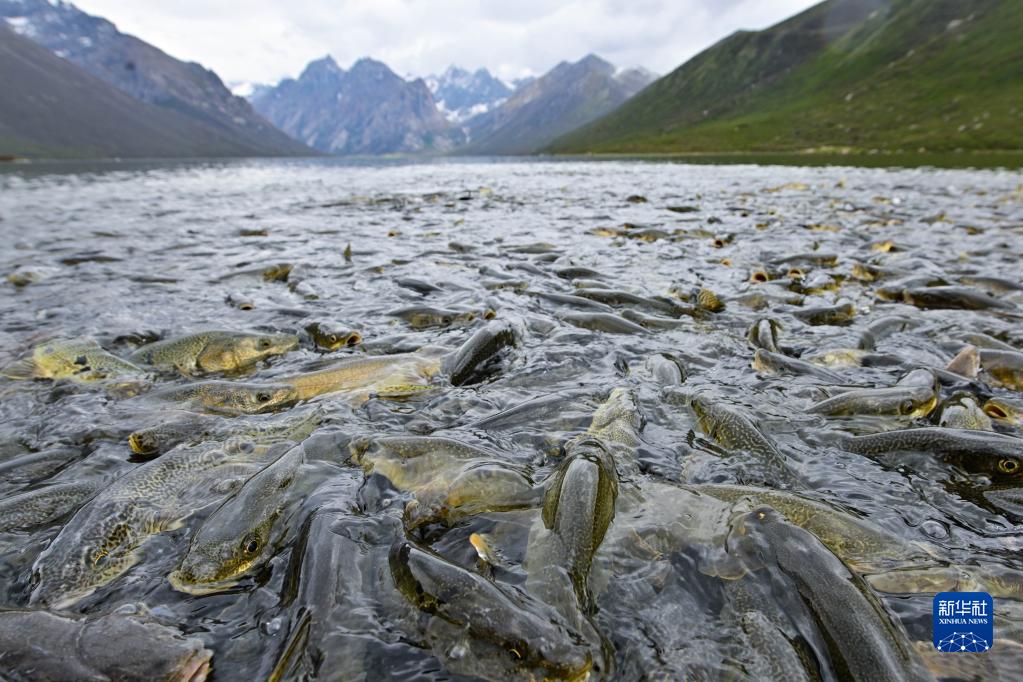 6月11日,在青海省果洛藏族自治州久治縣境內的年保玉則,裸鯉在水中活動(dòng)。
