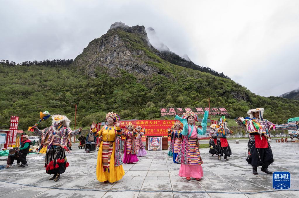 6月10日,來(lái)自隆子縣的文藝工作者為玉麥鄉的居民表演藏戲。