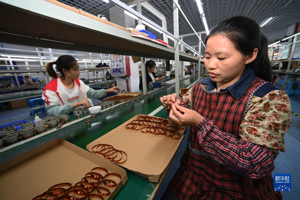 6月12日,工人在鳳岡縣一揚聲器生產(chǎn)企業(yè)加工組裝音圈。