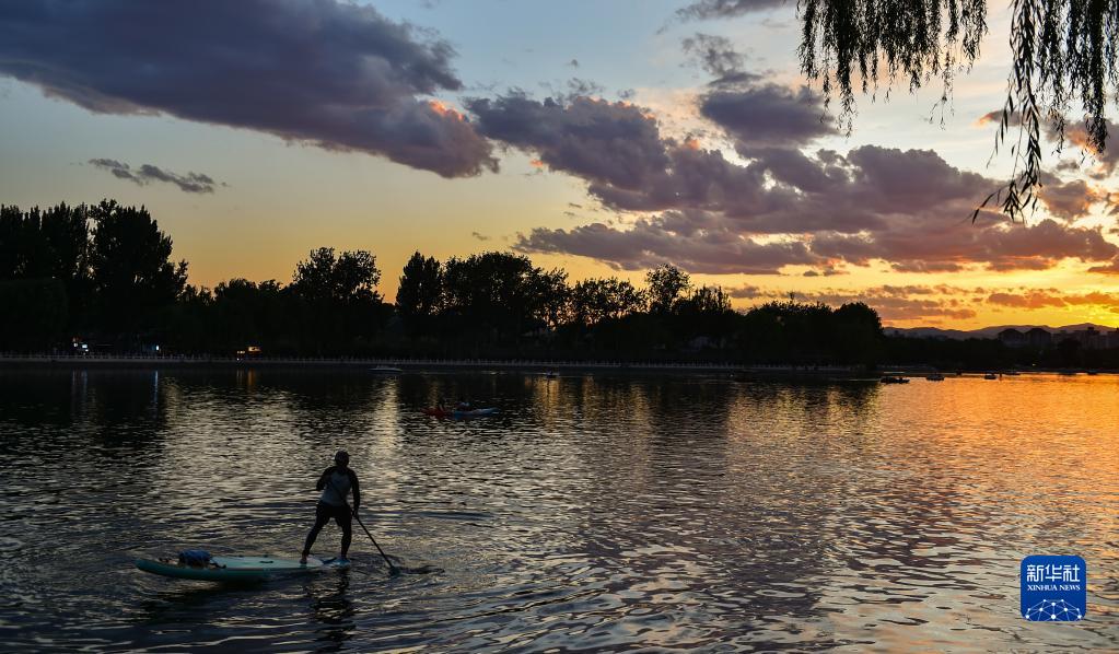 夕陽(yáng)下的什剎海(6月10日攝)。新華社記者 陳鐘昊 攝