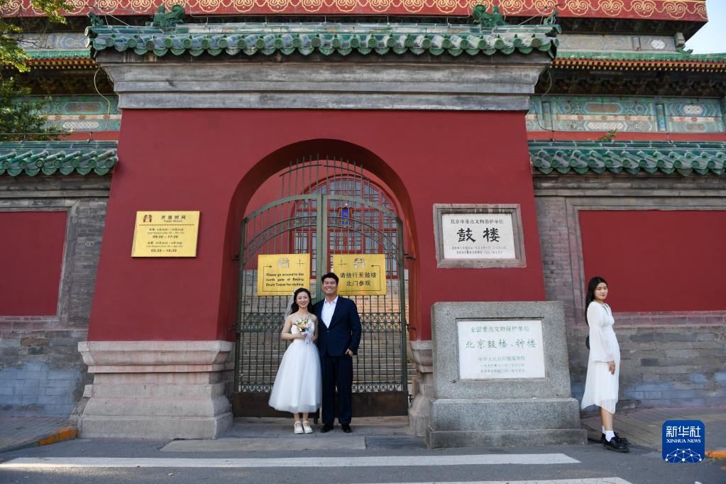 6月9日,人們在北京鼓樓拍照。新華社記者 鞠煥宗 攝