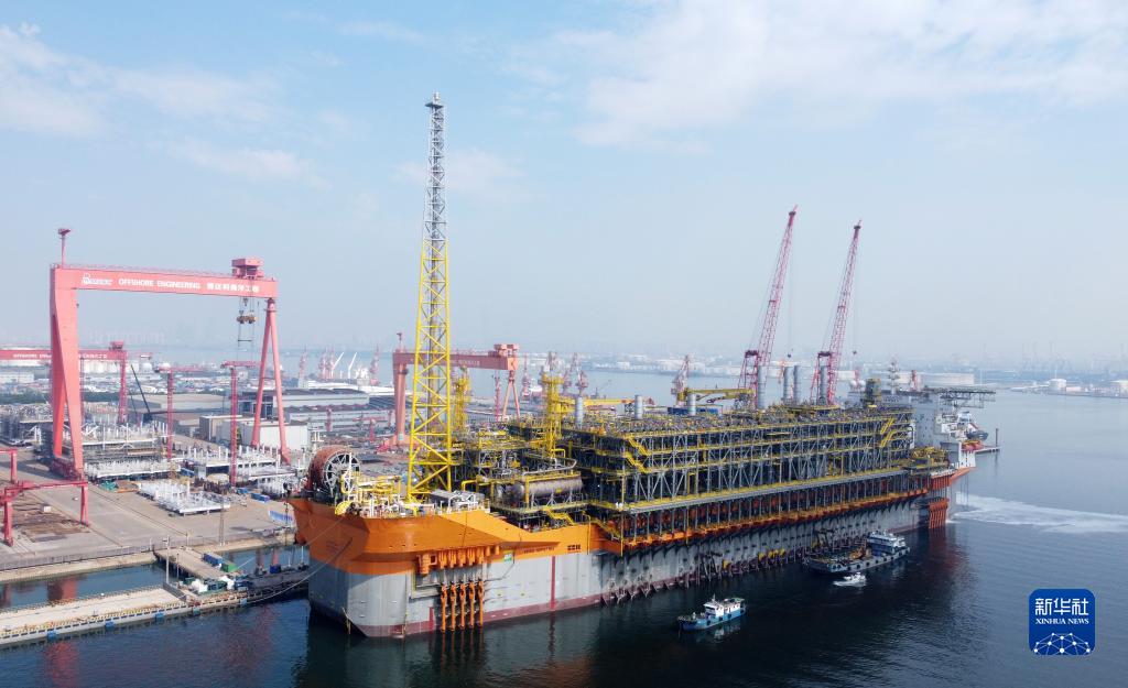 這是6月12日拍攝的??吭诖a頭的海上浮式生產(chǎn)儲卸油船(FPSO)“SEPETIBA”輪(無(wú)人機照片)。新華社記者 趙子碩 攝