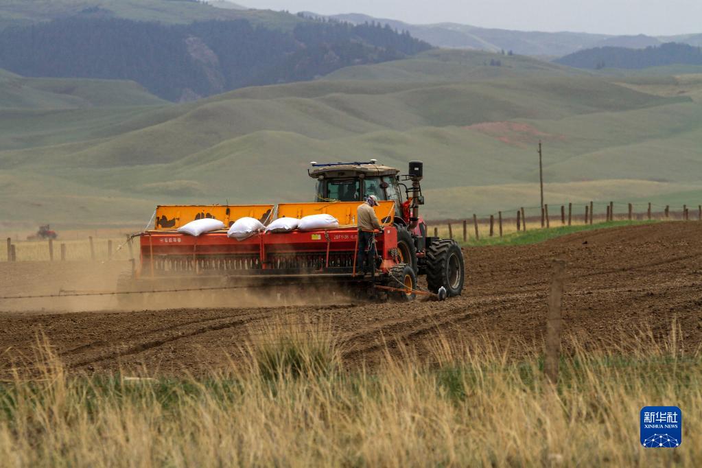 初夏時(shí)節,地處祁連山下的甘肅山丹馬場(chǎng)農業(yè)工人搶抓農時(shí)播種牧草,一派繁忙景象。新華社發(fā)(陳禮 攝)