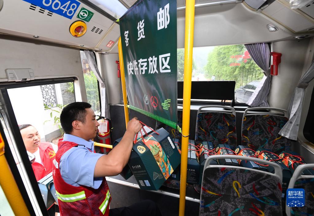 6月13日,在杭州市富陽(yáng)區湖源鄉窈口村的“源享共富工坊”外,當地交通部門(mén)的黨員志愿者將灰湯粽禮盒裝上“客貨郵”專(zhuān)線(xiàn),銷(xiāo)往外地。富陽(yáng)區以城鄉公交為載體的客貨郵融合專(zhuān)線(xiàn),著(zhù)力解決快遞下鄉、農產(chǎn)品進(jìn)城問(wèn)題,打通城鄉物流末端,實(shí)現資源共享、城鄉共富。