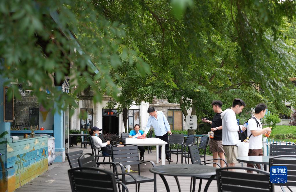 6月12日,人們在強蛟鎮橫山島的一家飲品店休憩。