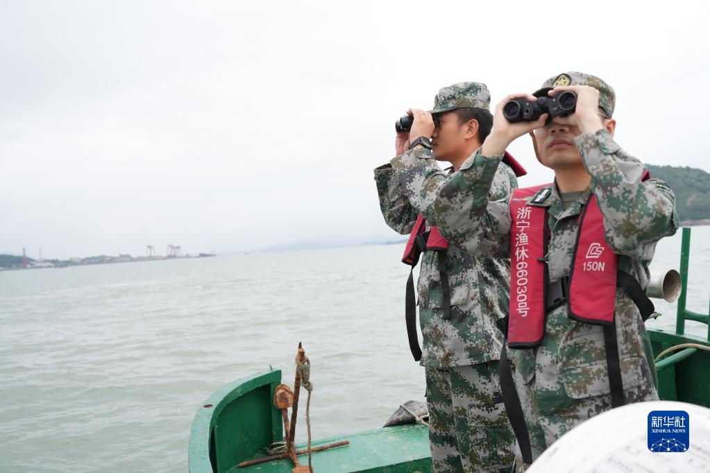 6月13日,海島護鳥(niǎo)隊的成員在巡邏船上觀(guān)察鳥(niǎo)類(lèi)棲息情況。