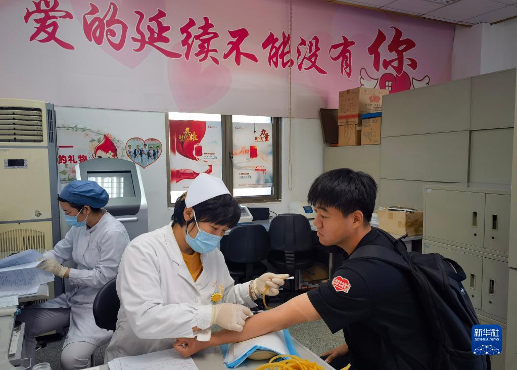 6月13日,中建三局北京公司舊宮安置房項目的青年員工在北京市紅十字血液中心獻血。