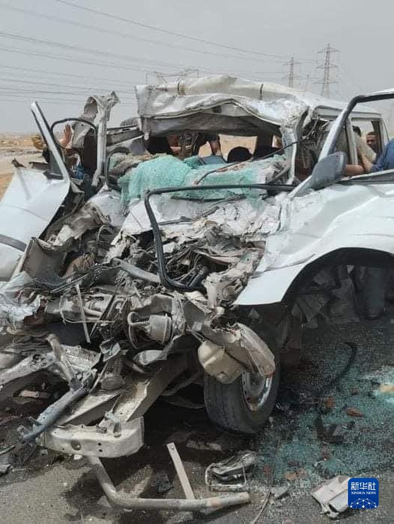 這是6月13日在埃及首都開(kāi)羅附近拍攝的交通事故現場(chǎng)。