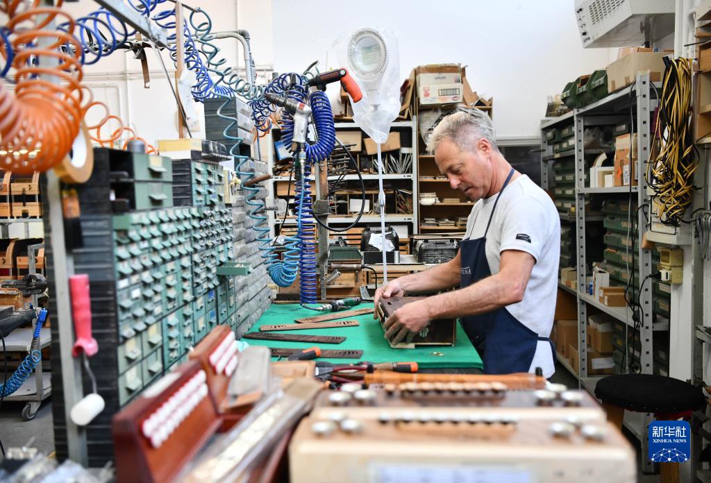5月29日,在意大利卡斯特爾菲達多,貝爾杜納品牌手風(fēng)琴工匠組裝手風(fēng)琴。