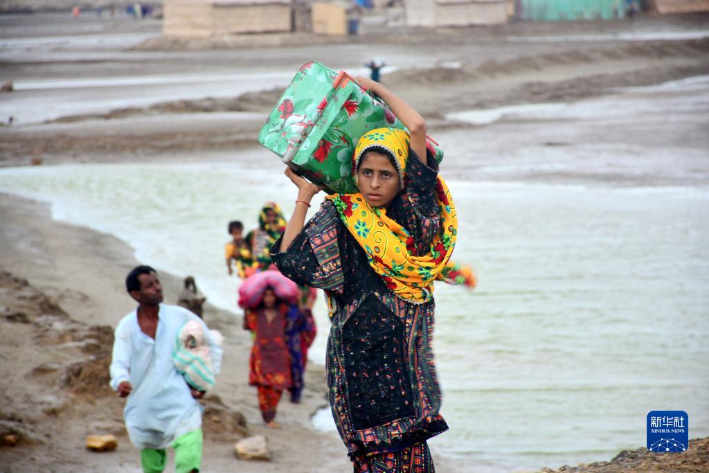 6月13日,受“比帕喬伊”颶風(fēng)迫近影響,民眾從巴基斯坦信德省特達地區撤離。