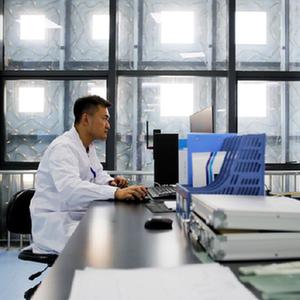 6月13日,工作人員在江蘇射陽(yáng)港零碳產(chǎn)業(yè)園的海上風(fēng)電復合材料檢測中心收集、分析測試數據。