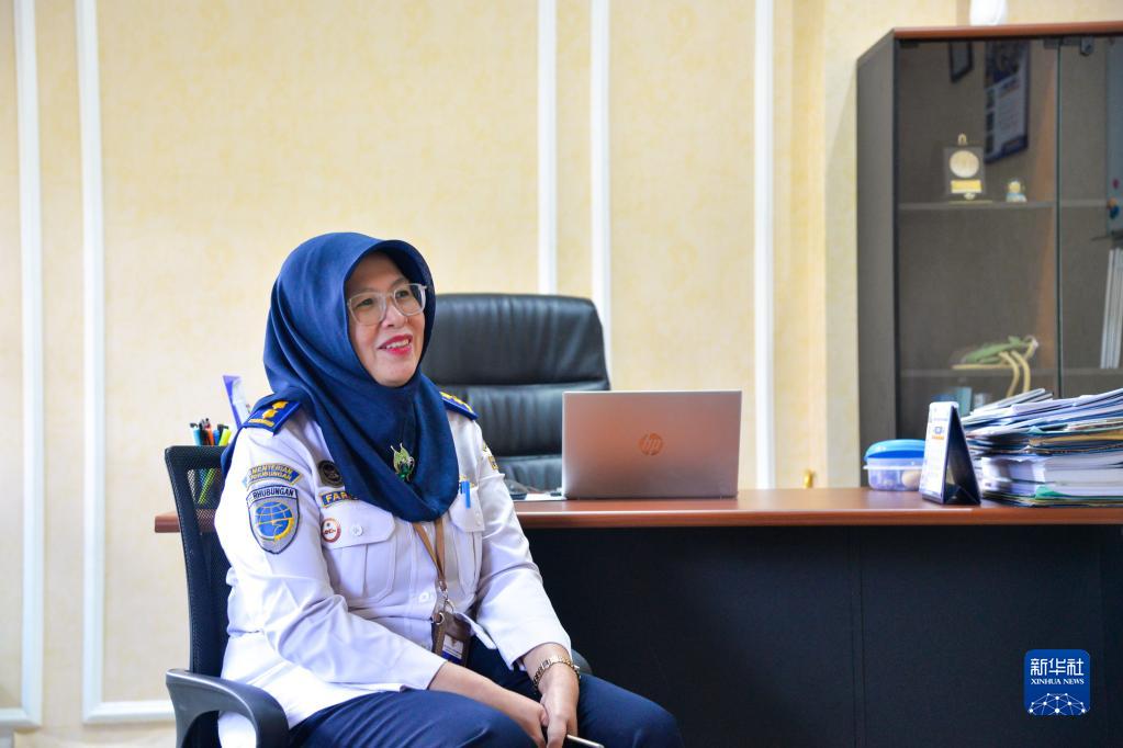 6月7日,在位于印度尼西亞茉莉芬市的印尼鐵路理工學(xué)院,印尼鐵路理工學(xué)院財務(wù)、公共和合作部門(mén)負責人法麗達接受新華社記者采訪(fǎng)。