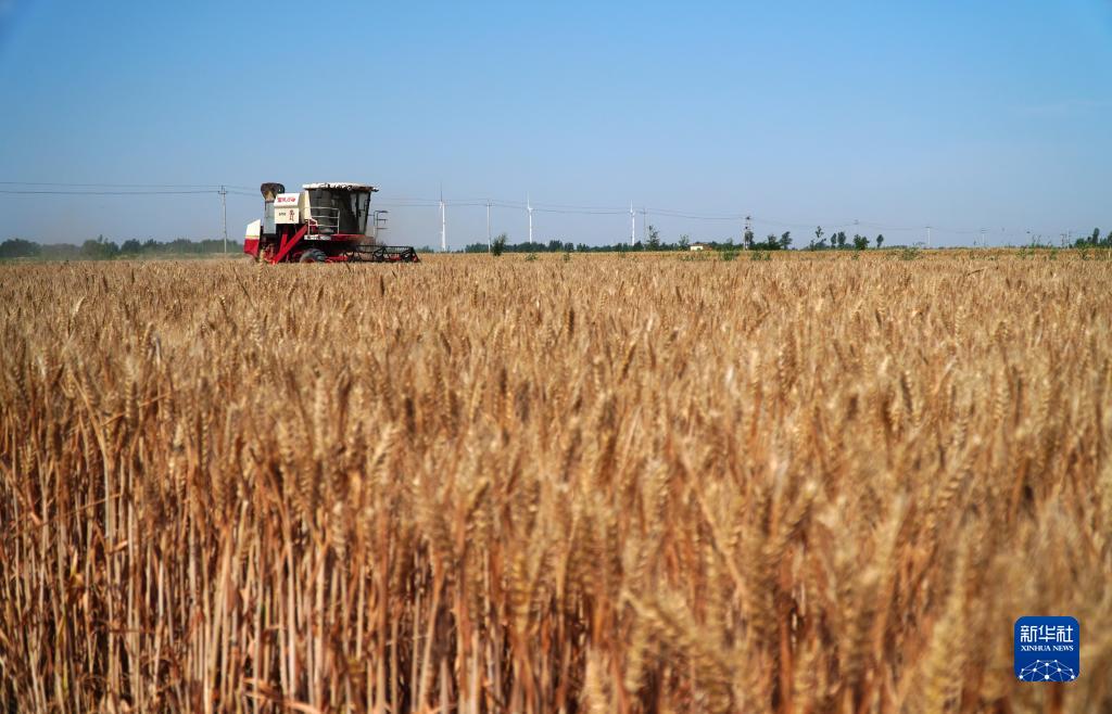 6月14日,在山東省臨邑縣林子鎮,聯(lián)合收割機在收獲小麥。