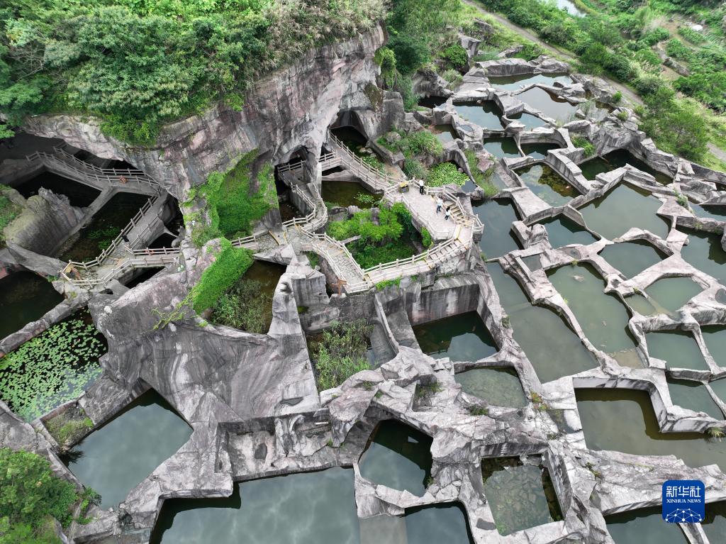 6月14日,游客在蛇蟠島的一個(gè)由廢棄采石坑改建的景區內觀(guān)光(無(wú)人機照片)。