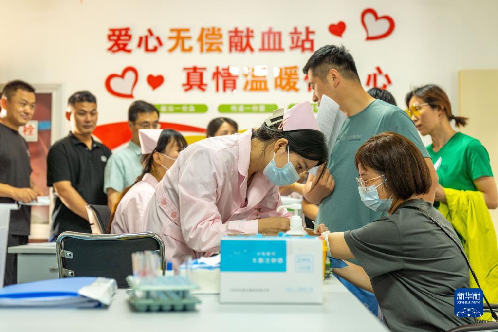 6月14日,市民在安徽省合肥市肥東縣血站無(wú)償獻血室進(jìn)行獻血前檢驗。