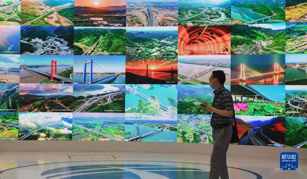 6月14日,觀(guān)眾在觀(guān)看交通成就展示墻。