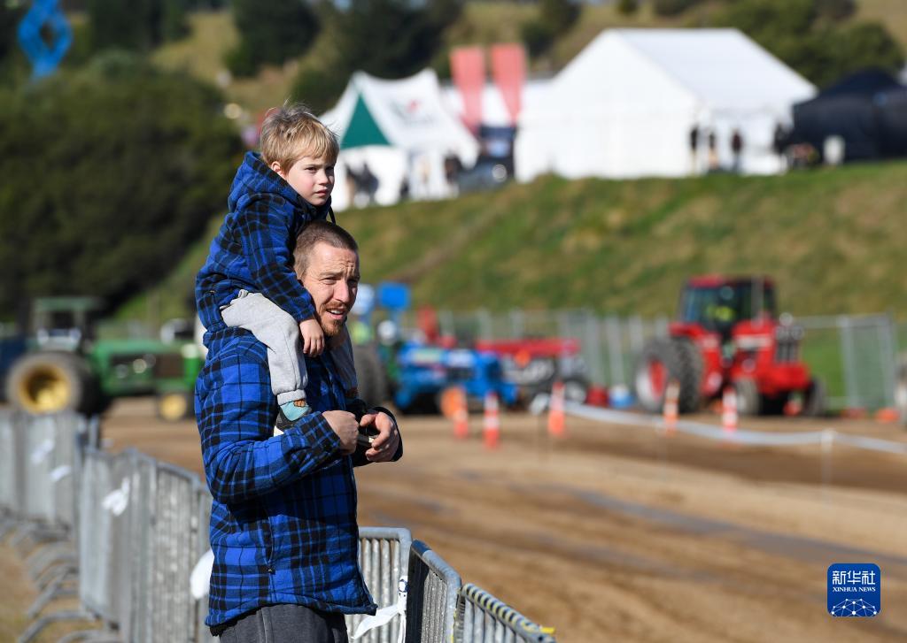 6月14日,在新西蘭漢密爾頓舉行的國際農業(yè)博覽會(huì )上,人們觀(guān)看拖拉機牽引大賽。新華社記者 郭磊 攝