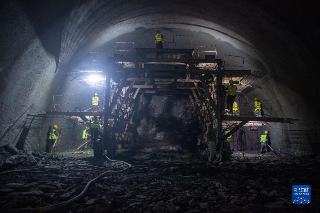 6月15日,工作人員在渝昆高鐵川渝段大山隧道貫通面施工作業(yè)。