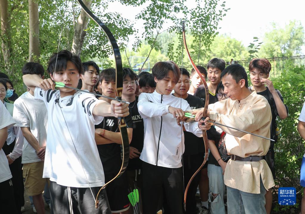 6月15日,沈陽(yáng)師范大學(xué)的學(xué)生體驗傳統弓箭。