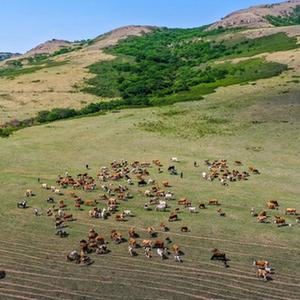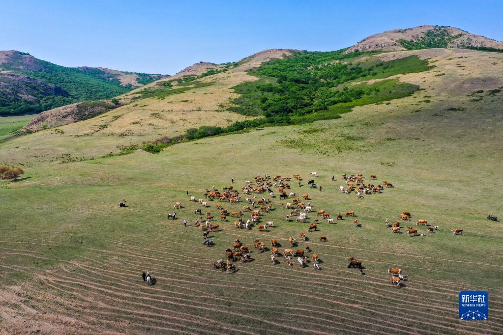 6月15日,牛群在草原上覓食(無(wú)人機照片)。