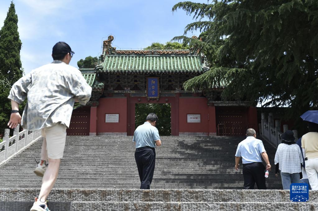 6月15日,游人在王屋山上參觀(guān)一處古跡。