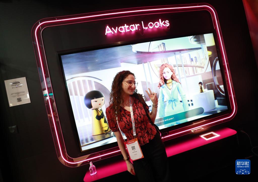 6月15日,在法國巴黎凡爾賽門(mén)展覽中心,一名女子在“科技萬(wàn)歲”科技創(chuàng )新展的歐萊雅展臺參觀(guān)體驗。