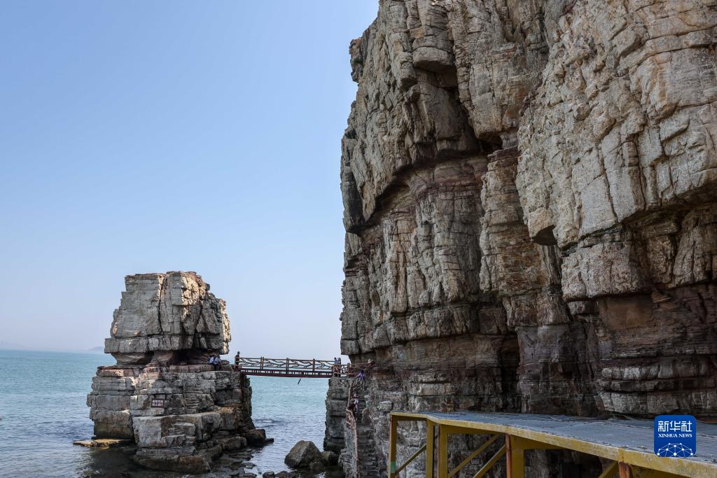 位于渤海灣山東長(cháng)島海洋生態(tài)文明綜合試驗區內的大黑山島是一座火山島,在島東端的龍爪山山腰部的石英巖上有一條長(cháng)約1.5公里的因億萬(wàn)年風(fēng)化和海蝕作用形成的天然“棧道”,隨著(zhù)海平面下降,“棧道”露出水面。據地質(zhì)部門(mén)勘察,海蝕“棧道”包含了大量古生物、海洋運動(dòng)信息,具有較高的地質(zhì)學(xué)研究?jì)r(jià)值,每年吸引游客前來(lái)參觀(guān)。